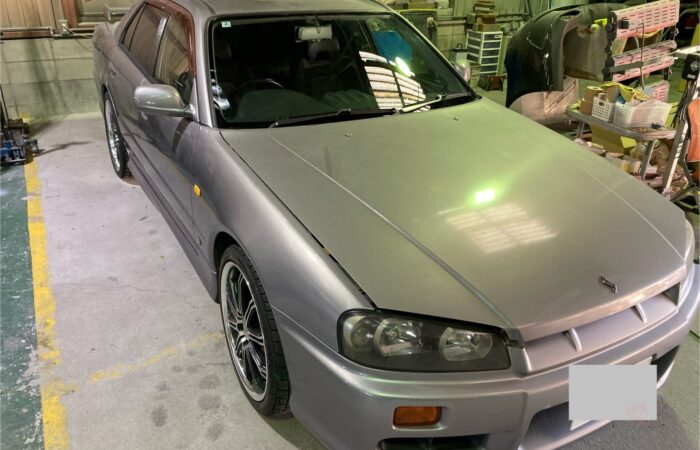 堺市在住のお客様より日産スカイライン、オールペイントのご依頼を頂きました。塗装工程でガラスを取り外してからペイントしなくてはならないので今回は脱着作業のみとなります。