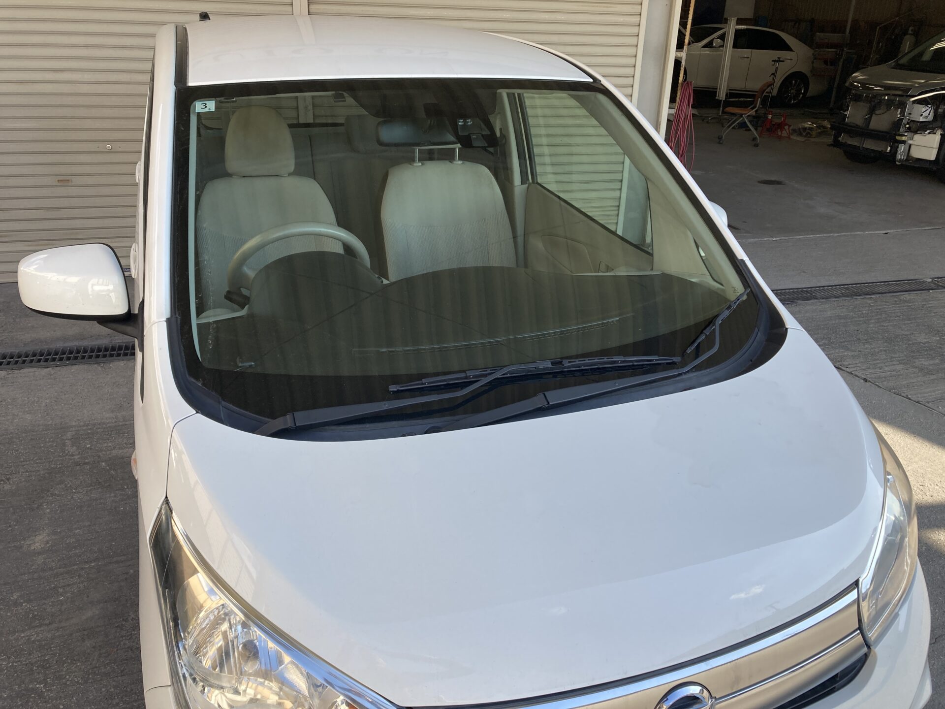 堺市在住のお客様より日産デイズフロントガラスの交換のご依頼を頂きました。走行中に飛び石でガラスがヒビ割れてしまい新品のガラスに交換する事となりました。