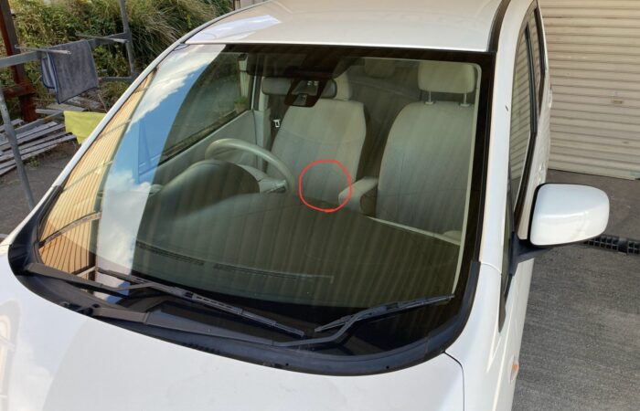 堺市在住のお客様より日産デイズフロントガラスの交換のご依頼を頂きました。走行中に飛び石でガラスがヒビ割れてしまい新品のガラスに交換する事となりました。