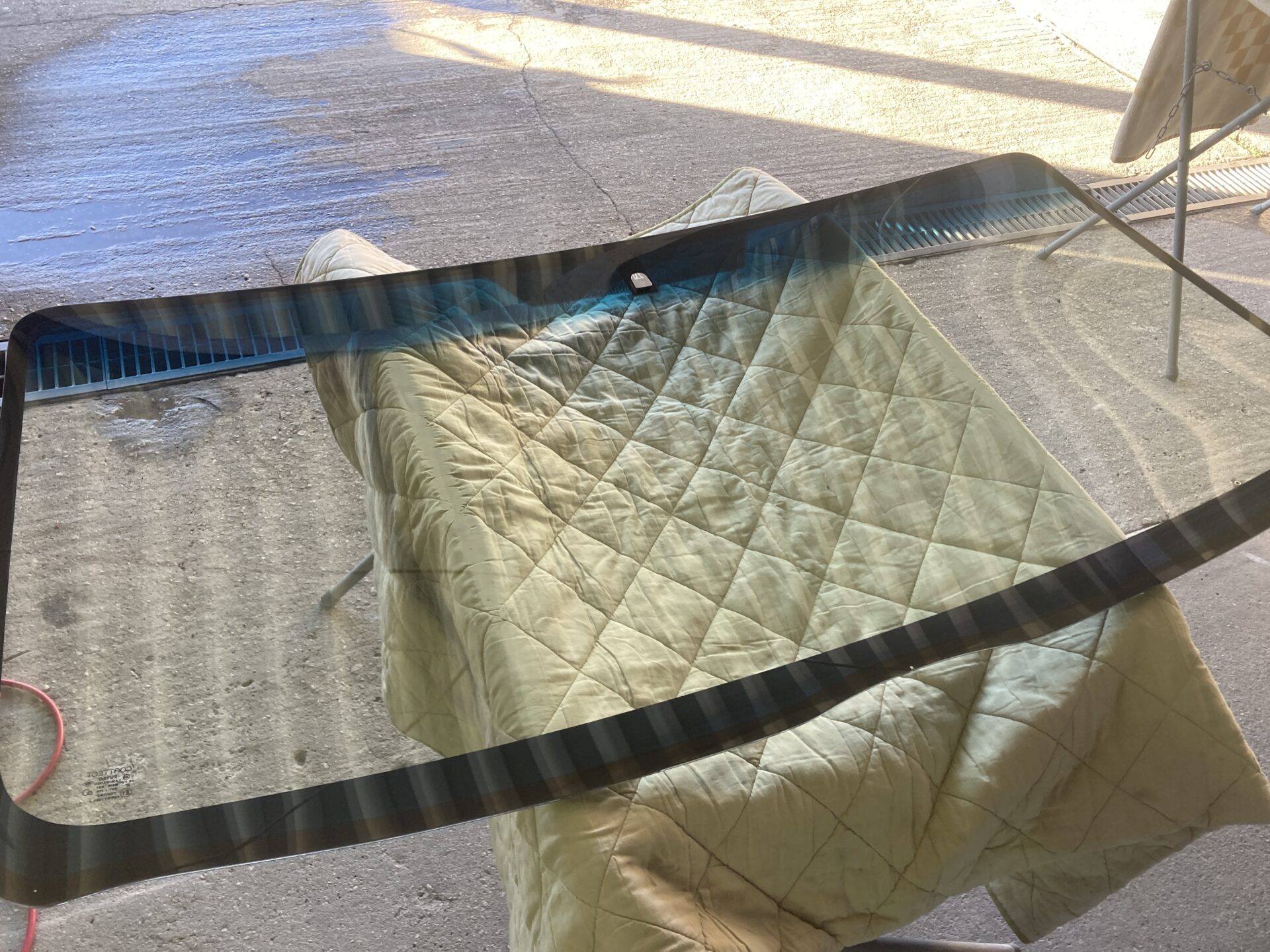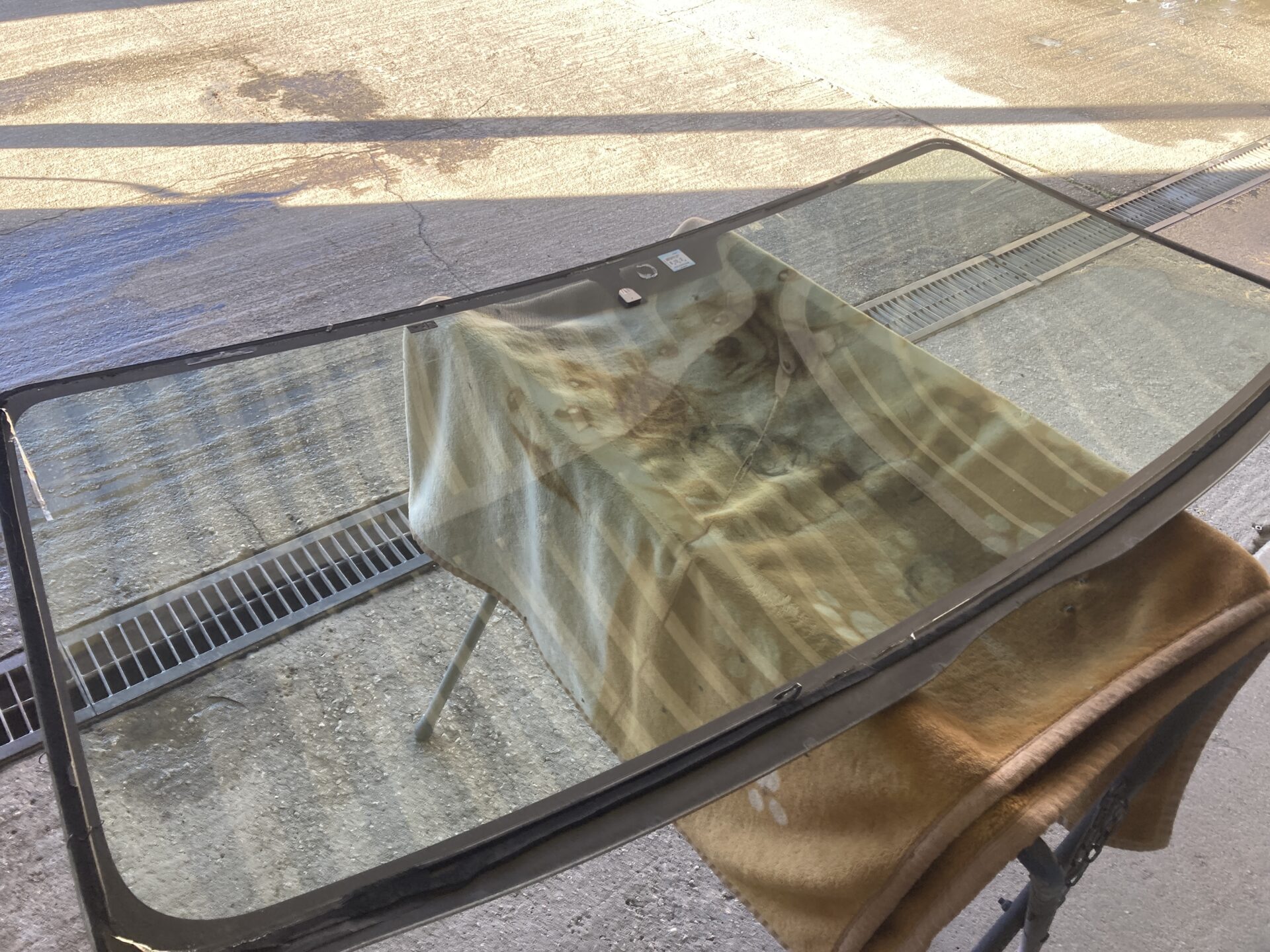 断熱の新品ガラスです。これを専用の接着剤で車体に取り付けます。
