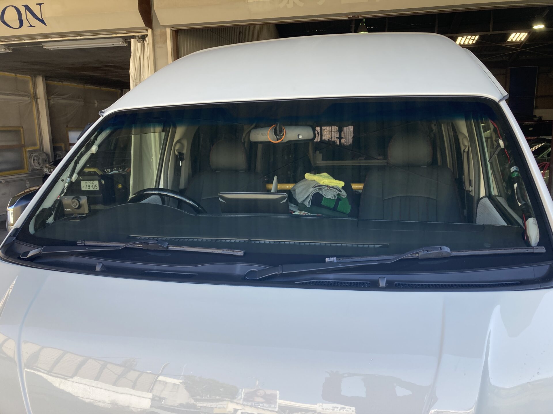 堺市在住のお客様よりトヨタハイエースのフロントガラスを断熱コートテクトに交換のご依頼を頂きました。夏の暑さに耐えられないとの事で当店へご相談に来られました。確かにクーラーを使用していても暑いですね。