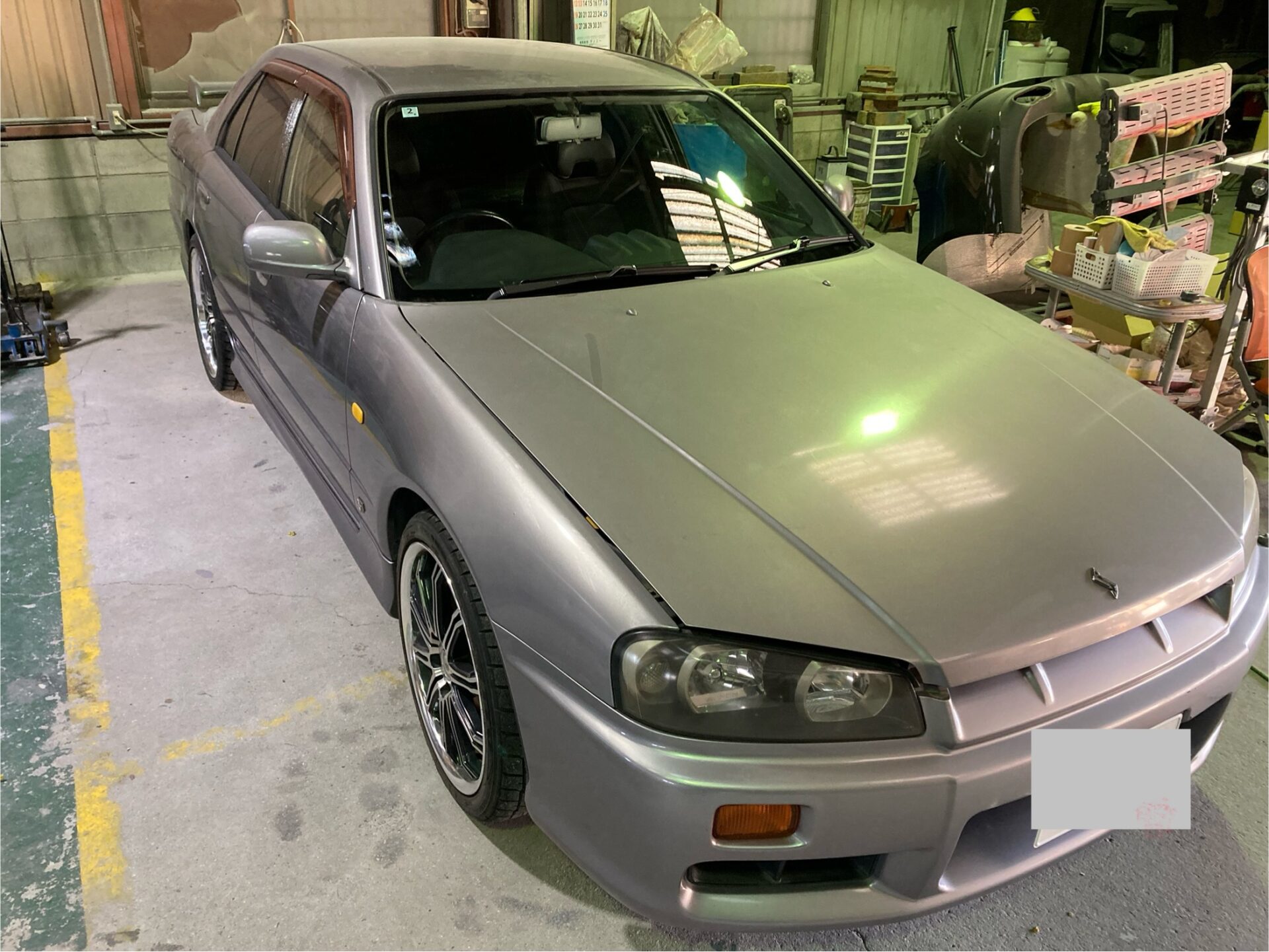 堺市在住のお客様より日産スカイライン、オールペイントのご依頼を頂きました。塗装工程でガラスを取り外してからペイントしなくてはならないので今回は脱着作業のみとなります。